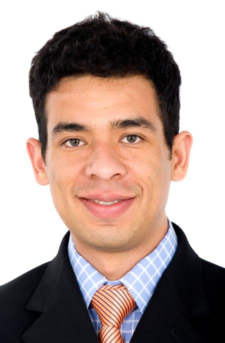 business man leaning over something imaginary - isolated over a white background