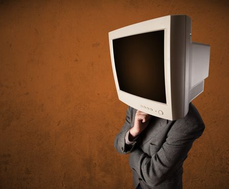 Business man with a monitor on his head concept and brown empty space