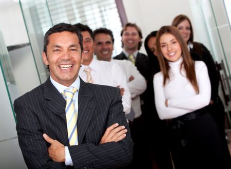 Business man at the office with a group behind