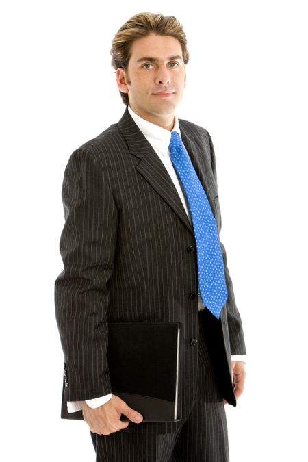 Business man with portfolio isolated over white