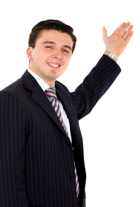 business man presenting over a white background
