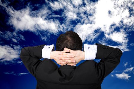 business man relaxing outdoors in front of a beautiful blue sky