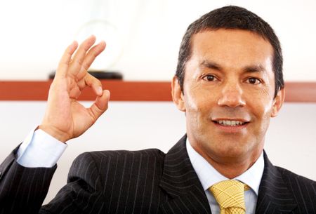 business man smiling doing the ok sign in his office
