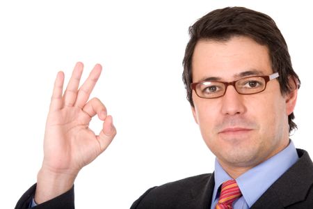 business man smiling doing the okay sign over a white background