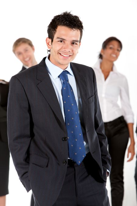 business man and his team isolated over a white background