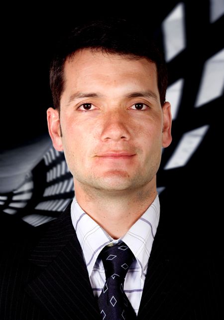 business man in his thirties - portrait on a very dark business like background