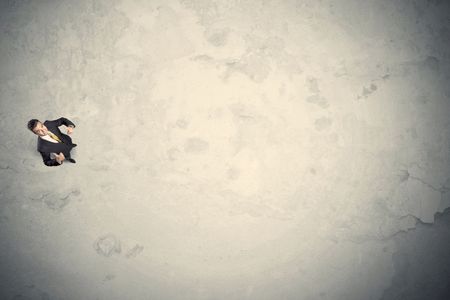 Business man from top standing with copy space desert background