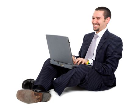 business man working on a laptop computer isolated over a white background
