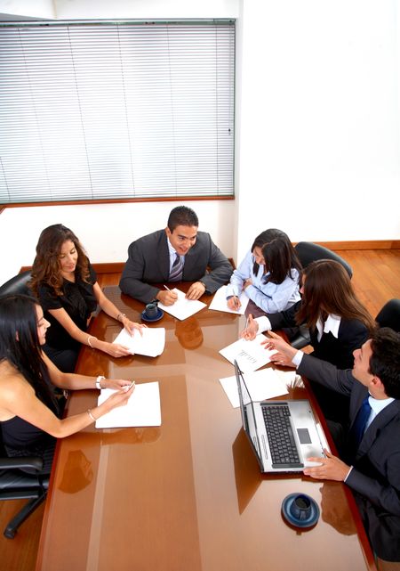 business meeting in an office from a high angle