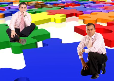 Business men with a multicolour puzzle isolated