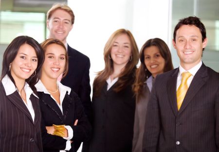 business office team work - all young and successful businessmen and businesswomen