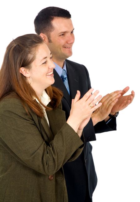 business partners applauding over a white background
