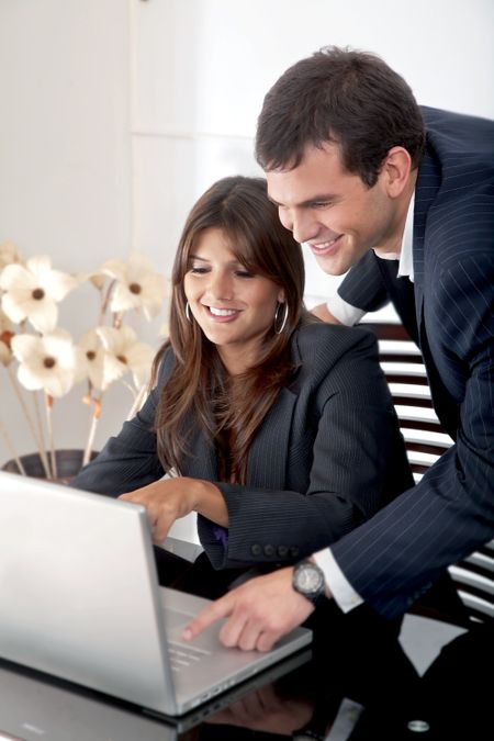 business partners on a laptop computer in an office
