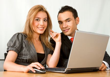 business partners in an office on a laptop computer
