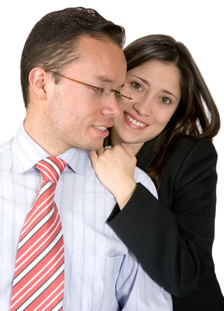 business partners smiling over a white background