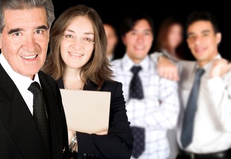 business partners and their team over a black background