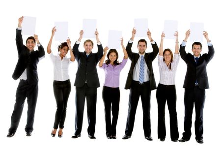Business people with banners isolated over a white background