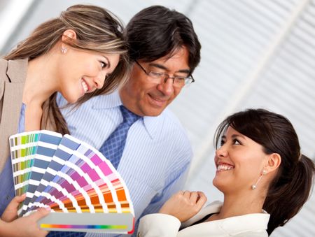 Business people with an interior designer redecorating the office