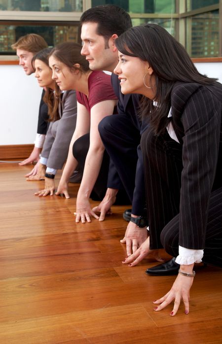 business people at the office in a racing line - competition concept