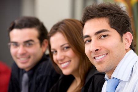 business people in an office smiling - small team