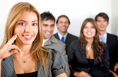 business people in an office smiling - small team