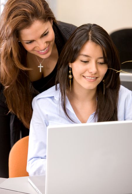 business people working on a laptop computer in an office