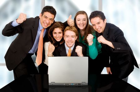 Business success team in an office in front of a laptop computer