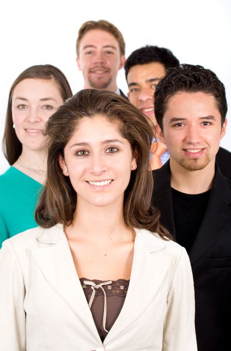 Business team lead by a businesswoman - isolated on a white background