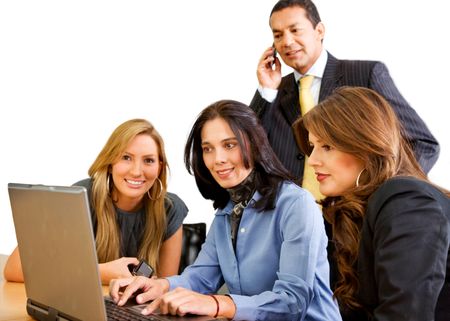 business team in a meeting with a laptop computer