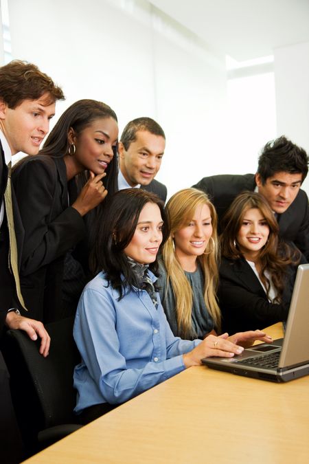 business team meeting in an office on a laptop computer