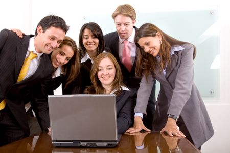 business team in an office laptop computer - meeting