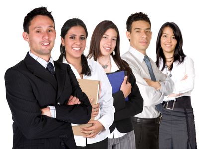 business team over a white background - all members of business team have a friendly look