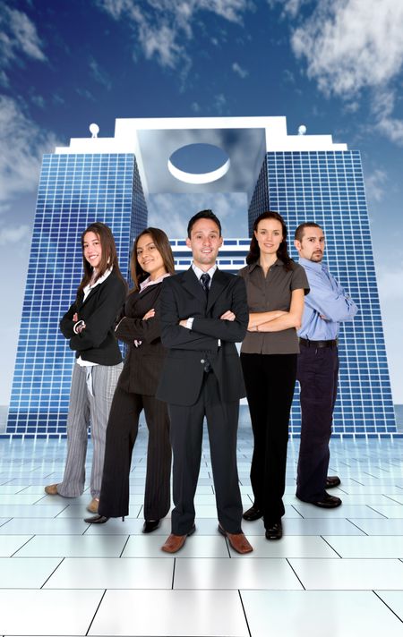Business team work in a business environment - all members of business team are smiling