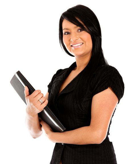 Business woman carrying a portfolio - isolated over white