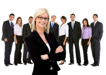 Business woman leading a successful corporate group ? isolated