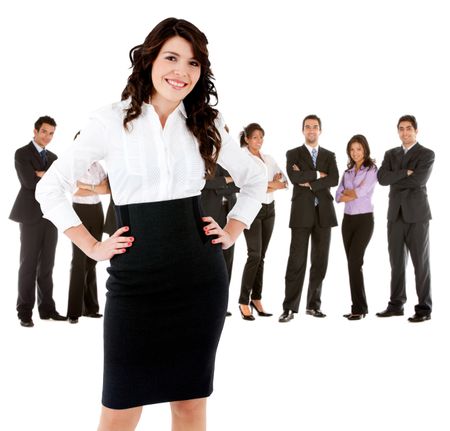 Business woman leading a successful corporate group ? isolated