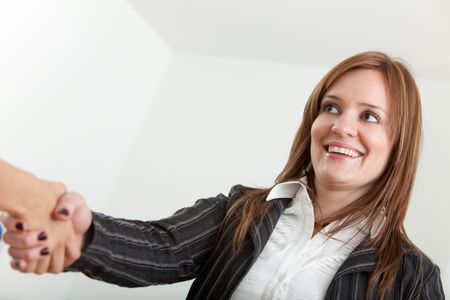 Business woman at the office giving a handshake
