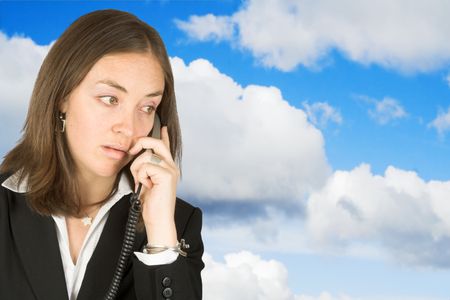 business woman on the phone with the sky on the background