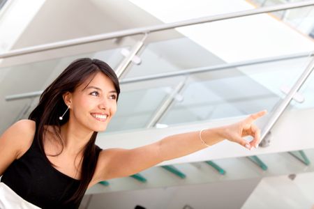 Business woman pointing at something at the office