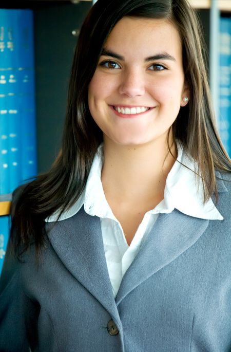 Business woman portrait smiling in an office - hispanic