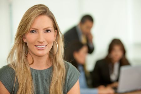 Business woman portrait with a team behind her