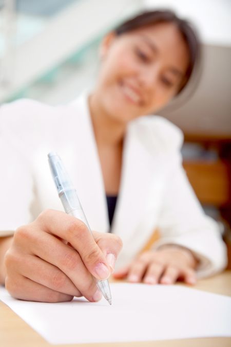 Business woman signing a contract at the office