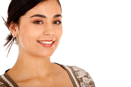 Business, woman smiling - isolated over a white background