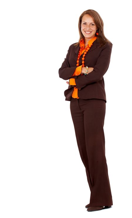 business woman standing wearing elegant clothes - isolated over a white background