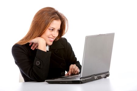 business woman working on a laptop isolated