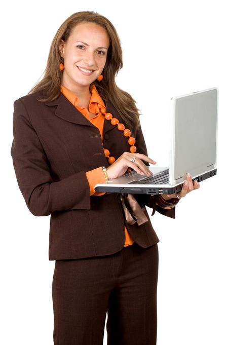 business woman working on a laptop - isolated over a white background