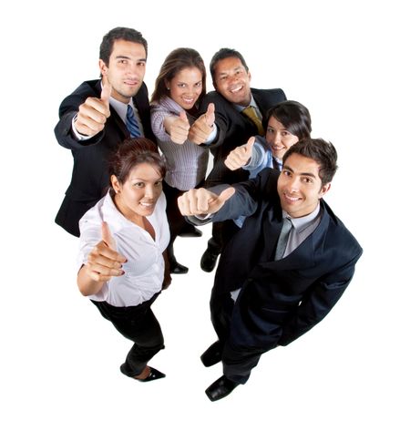 Businessgroup with thumbs up isolated on white