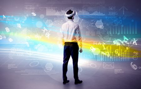 Businessman checking 3d reports and datas with vj glasses