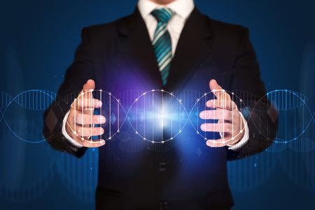 Businessman with DNA concept in his hands