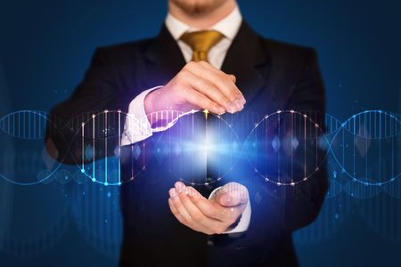 Businessman with DNA concept in his hands